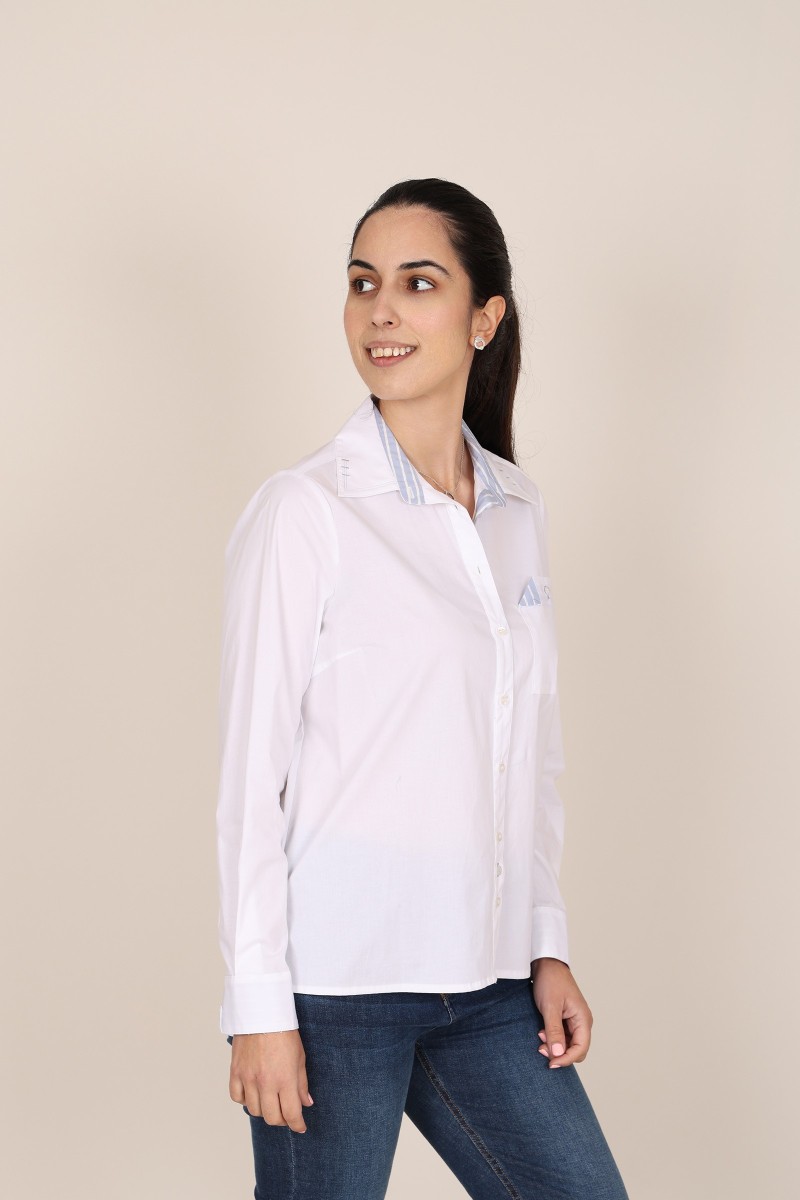 White Shirt in two textures: Knitted and Cotton Poplin. Mao collar, French sleeves . An artisan jewel, made with care using shirting techniques. Made in Spain